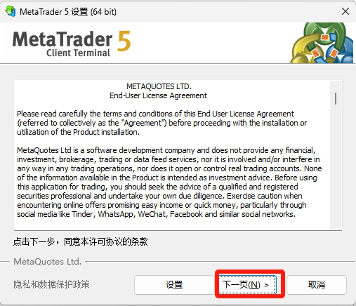 1.点击>> Windows版本下载 链接,下载MT5安装程序(.exe文件)。