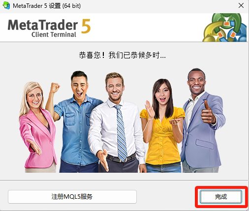 4.安装完成后,点击“完成”,MT5平台会自动启动。