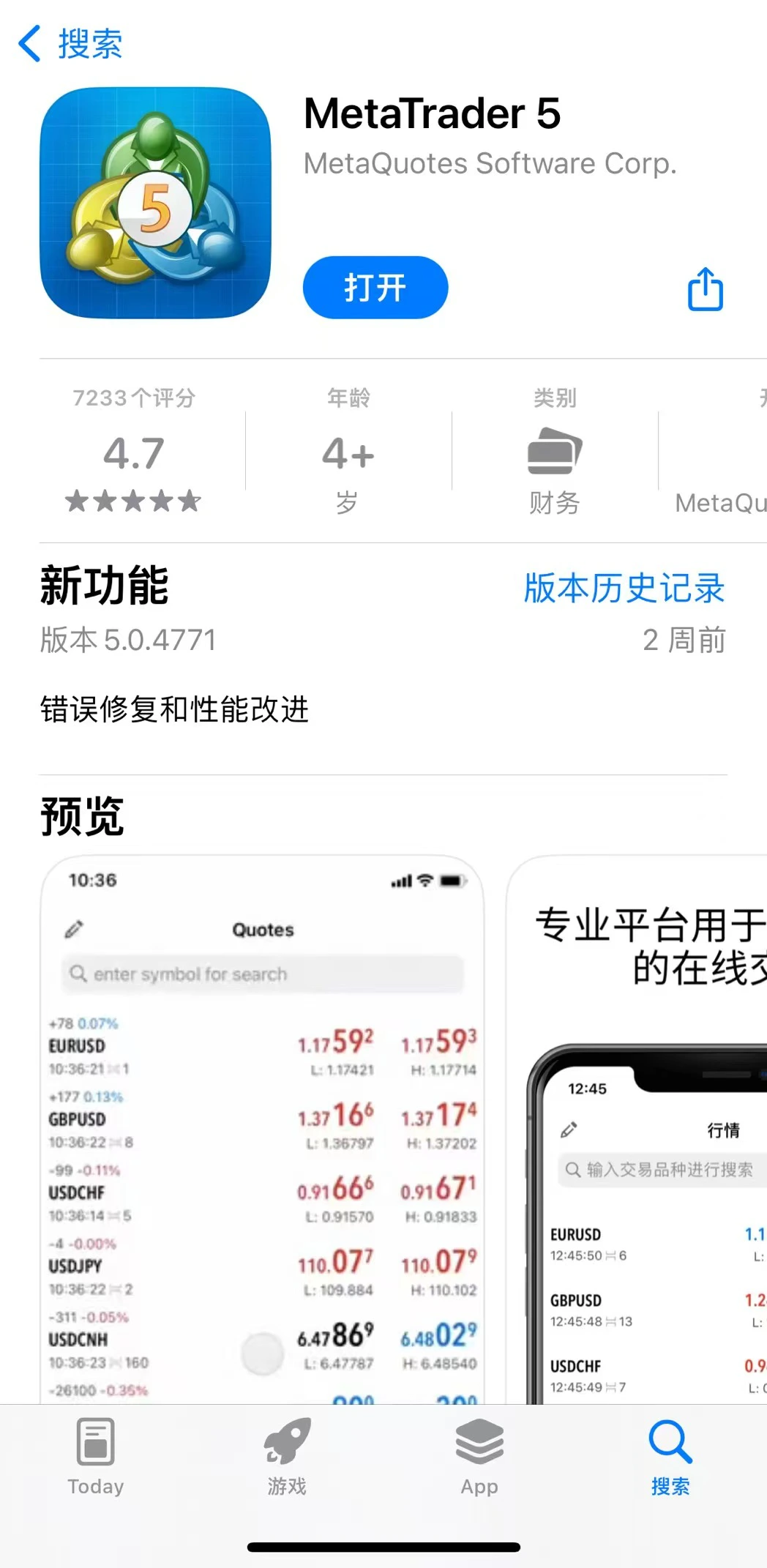 1.安装完成后,您可以在主屏幕上找到并点击MT5图标打开应用。