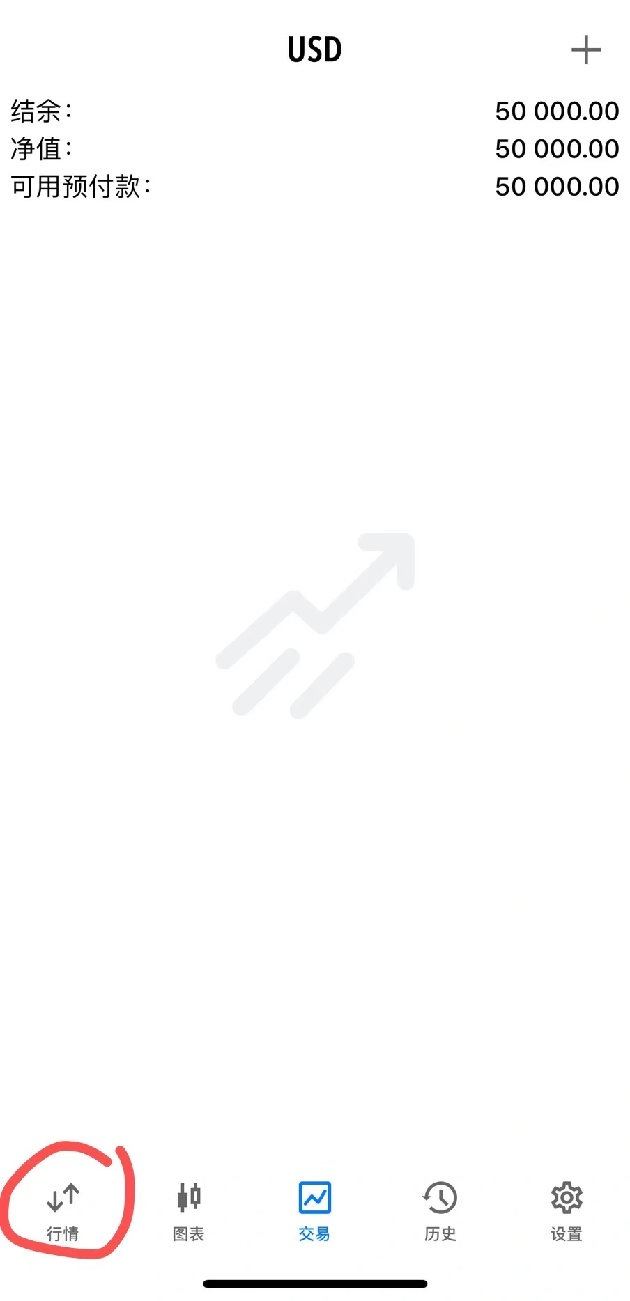 1. 打开MT5应用程序,进入登录界面。如果出现“开设模拟账户”则点击“取消”